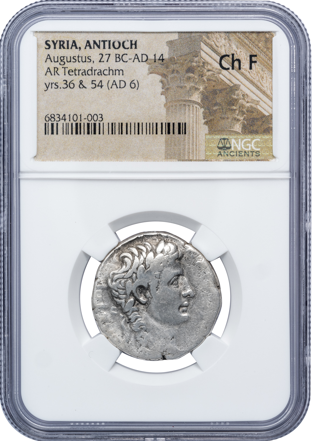 AUGUSTUS SILVER TETRADRACHM – AD 6 ISSUE – CHOICE FINE NGC GRADED ROMAN PROVINCIAL COIN (Inv. 19325)