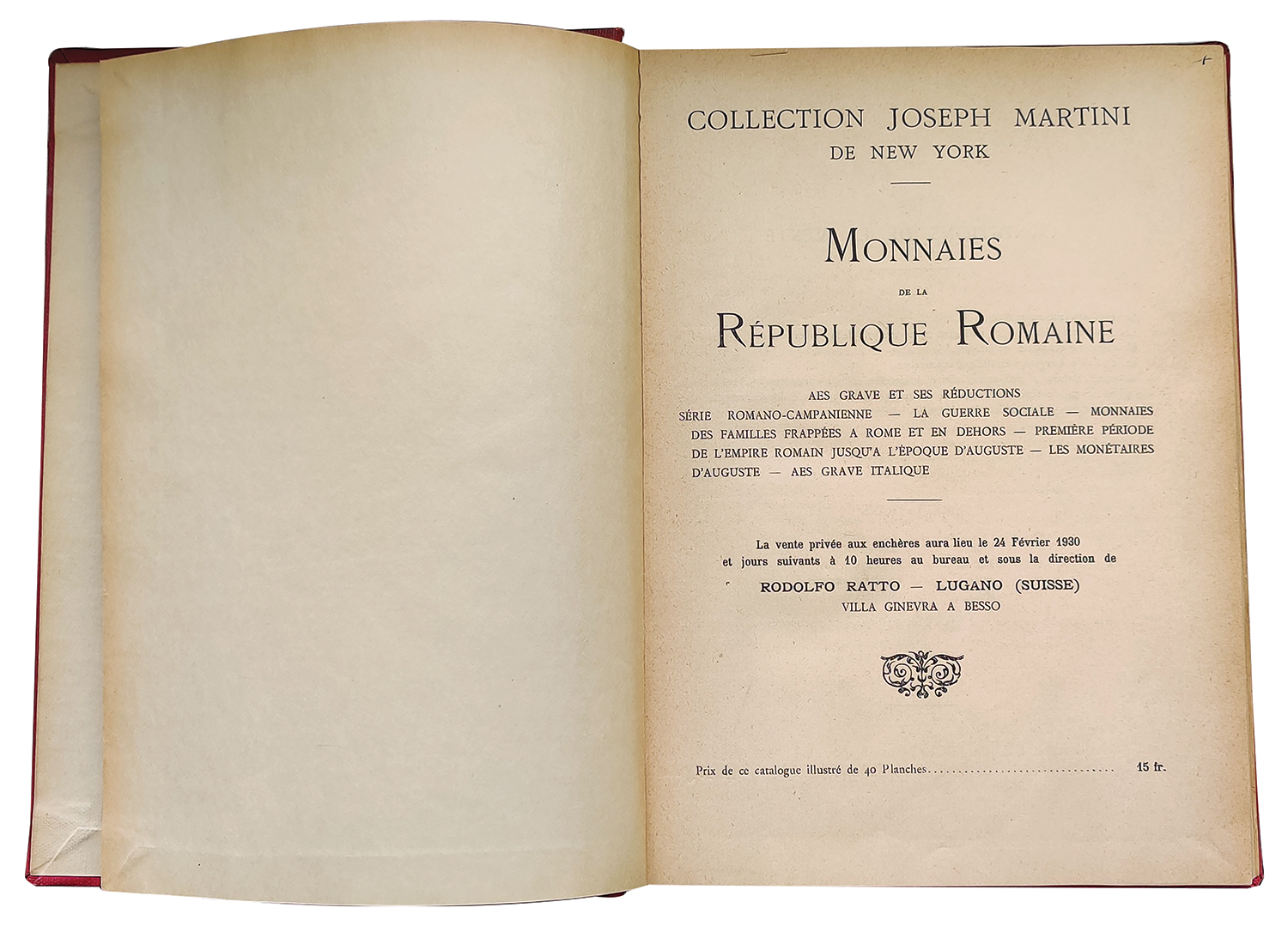 Ex Robert W. Hubel Collection, Michigan = Baranowsky, 2/25/1931, lot 960 = Joseph Martini Collection (part 3), R. Ratto, 2/24/1930, lot 588.